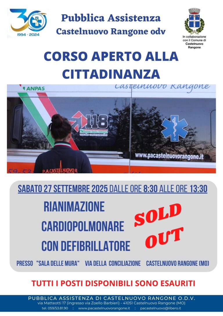 Presso la palestra Vezio Magagni delle scuole medie di Castelnuovo Rangone, 35 volontari, 6 istruttori interni accreditati, 2 direttori di sala hanno svolto un round formativo diviso in due sessioni per le manovre secondo protocollo ERC/IRC della rianimazione cardio-polmonare di…
