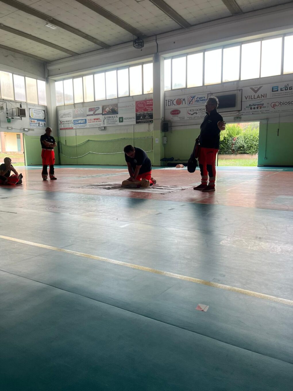 Presso la palestra Vezio Magagni delle scuole medie di Castelnuovo Rangone, 35 volontari, 6 istruttori interni accreditati, 2 direttori di sala hanno svolto un round formativo diviso in due sessioni per le manovre secondo protocollo ERC/IRC della rianimazione cardio-polmonare di emergenza.
